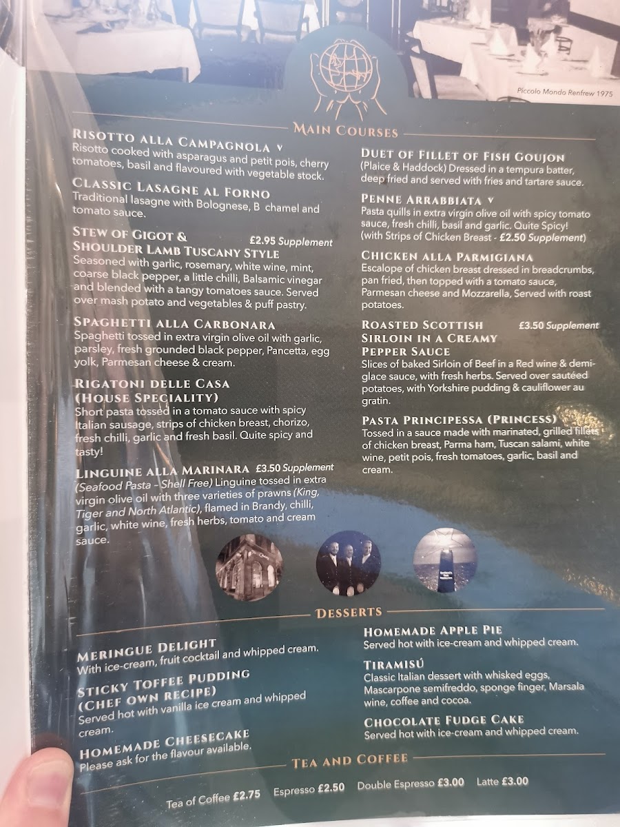 Piccolo Mondo Renfrew, located at 63-65 Hairst St, Renfrew PA4 8QU, is a delightful gem for Italian cuisine enthusiasts in the heart of Renfrew. Known for its warm atmosphere and authentic Italian fare, the restaurant consistently offers a memorable dining experience that caters to both casual diners and those looking for a more refined meal.